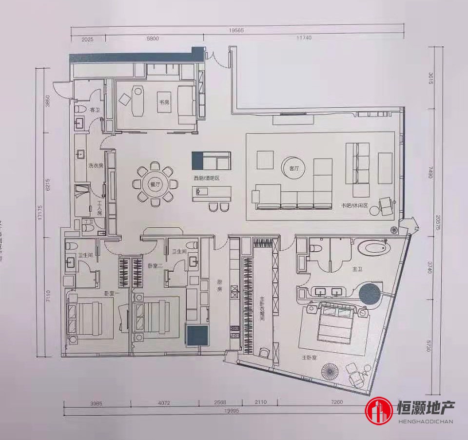 此房3房1书房1保姆房2厅2厨1吧台5卫,真是满足你对幸福的追求。